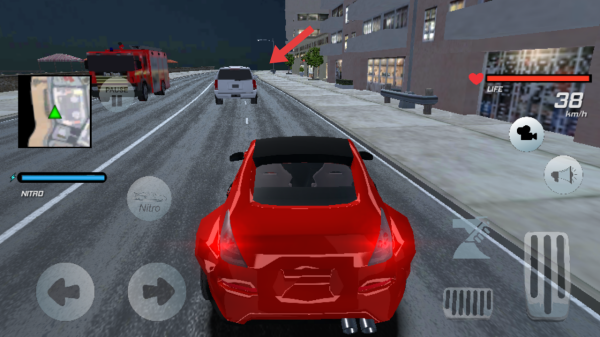 3、操控駕駛車輛沿著街道前行,朝著任務(wù)目標(biāo)區(qū)域移動,注意來往的車輛,需要及時(shí)避讓。