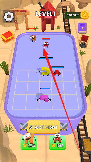 3、運用策略擊敗敵人完成PK,收集金幣,字母人實力進一步提升,可進入新場景繼續(xù)冒險進化。