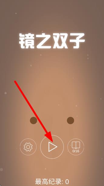 1、游戲初始界面,點擊中間三角形按鈕,進(jìn)入鏡之雙子關(guān)卡,可先查看設(shè)置功能,了解玩法后開啟挑戰(zhàn)。