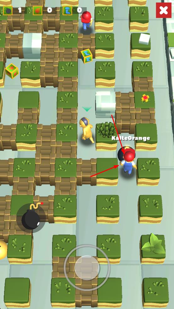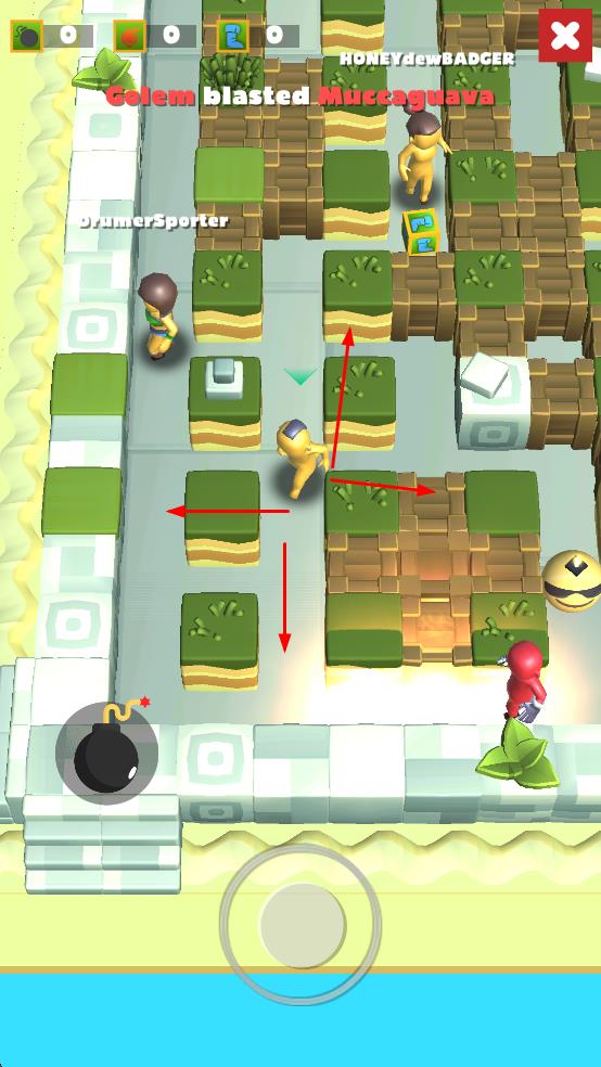 3、與其他玩家在迷宮中互動,躲避對手炸彈同時精準出擊,獲取勝利推進游戲進程。