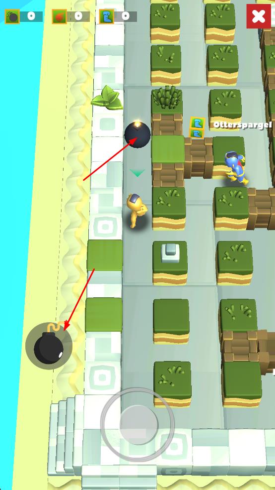 2、點擊炸彈按鈕放置炸彈,利用爆炸效果摧毀障礙或攻擊對手,積累對戰(zhàn)優(yōu)勢。
