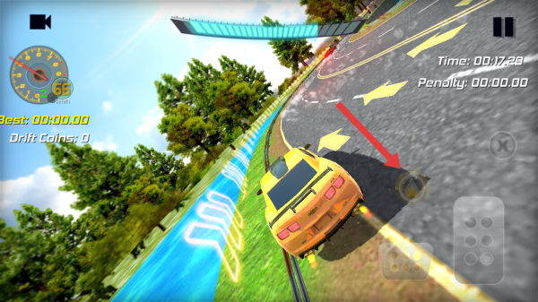 2、行駛至彎道時(shí),點(diǎn)擊右側(cè)POWER的圖標(biāo)釋放加速動(dòng)力,輔助賽車進(jìn)行平穩(wěn)的過彎并維持速度。