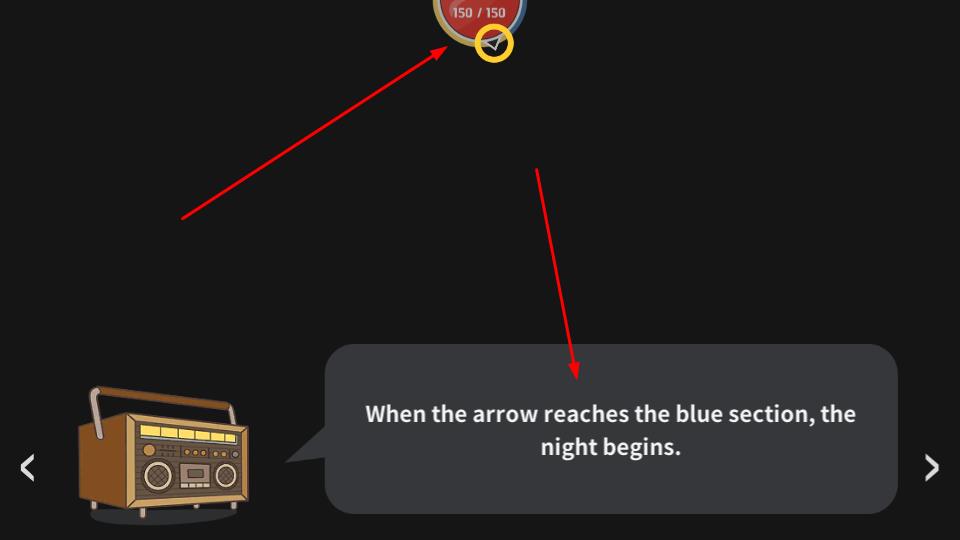 2、跟隨收音機(jī)對(duì)話指引,緊盯上方圓形指針,待箭頭進(jìn)入藍(lán)色區(qū)域時(shí)觸發(fā)夜晚機(jī)制,解鎖夜間專屬挑戰(zhàn)與事件。