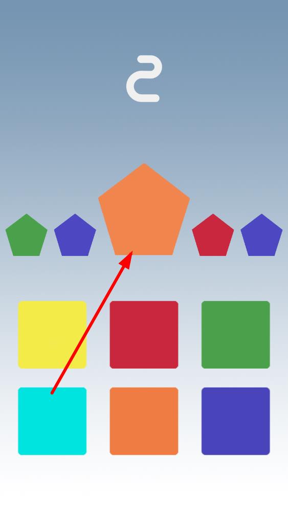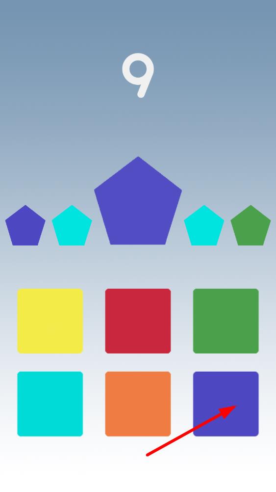 1、觀察上方最大五邊形的顏色,下方方格中會出現(xiàn)多種色彩,嘗試點擊與五邊形顏色相同的方格,熟悉顏色匹配規(guī)則。