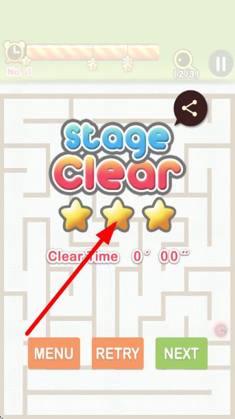 3、成功抵達(dá)終點(diǎn),獲得三星評(píng)價(jià),可點(diǎn)擊NEXT進(jìn)入下一關(guān),RETRY重玩刷記錄,MENU返回主界面,繼續(xù)挑戰(zhàn)更多迷宮。