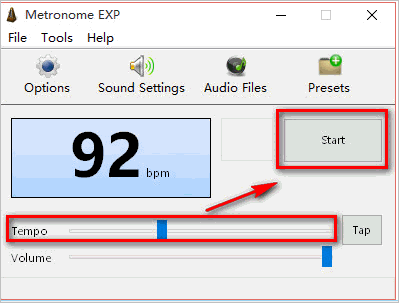 點擊tempo按鈕調節(jié)接拍速度,start開始