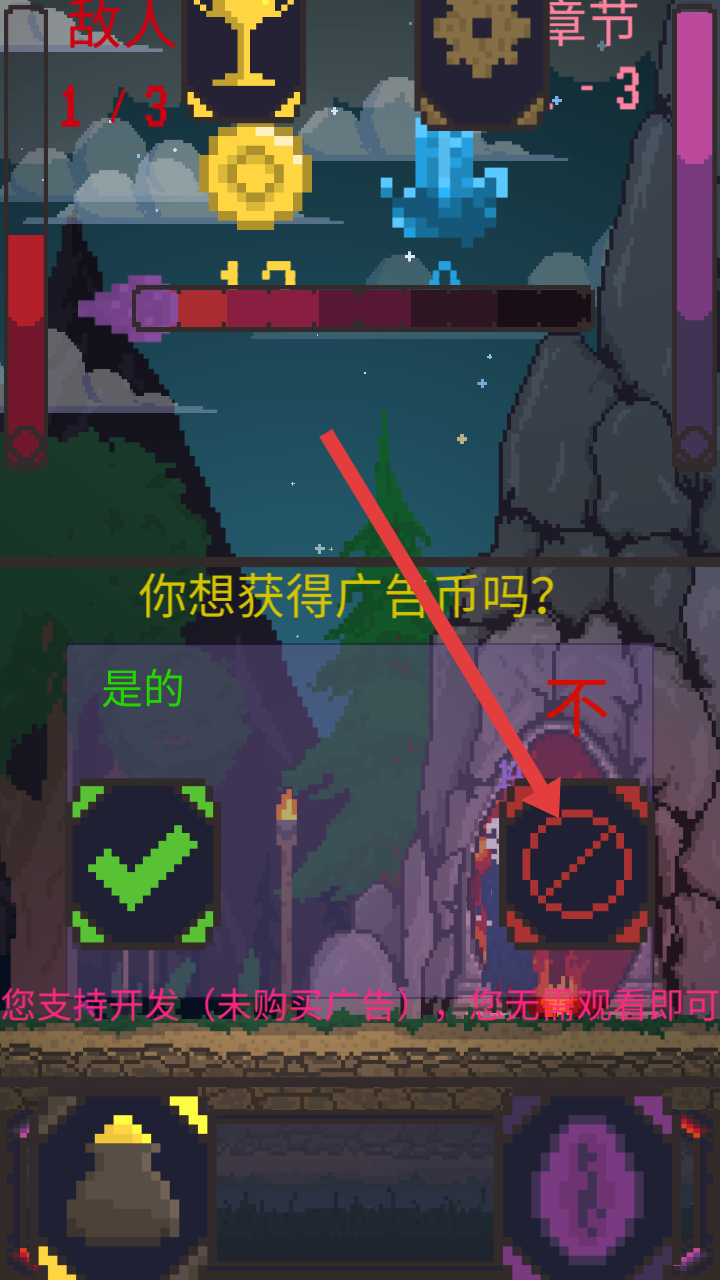 3、當彈出你想獲得廣告幣嗎的詢問界面時,可以點擊紅色叉號標識的不按鈕,跳過廣告操作。