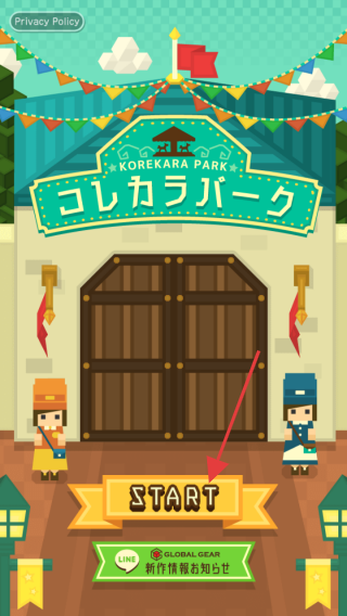 1、這是一款名為KOREKARA PARK的游戲,在初始界面,點擊START按鈕,即可進入游戲,開啟你的公園經(jīng)營之旅。