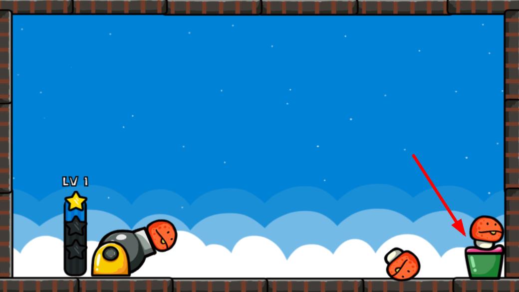 1、點(diǎn)擊屏幕移動(dòng)手指,調(diào)整蘑菇大炮的角度和發(fā)射力度,松開(kāi)手指發(fā)射蘑菇,嘗試將其射入簡(jiǎn)單布局的空桶,熟悉基礎(chǔ)操作邏輯。