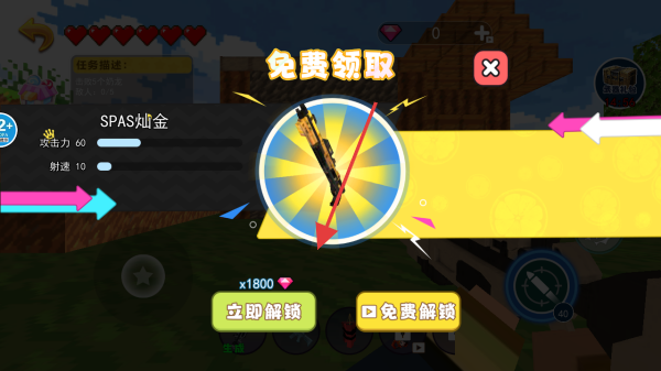 2、在游戲過程中,會(huì)有武器領(lǐng)取提示,如SPAS燦金,你可以選擇立即解鎖或免費(fèi)解鎖,獲取強(qiáng)力武器,提升你的戰(zhàn)斗能力。