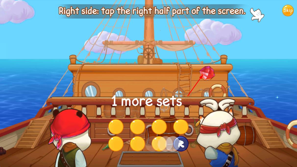 1、海盜主題與節(jié)奏融合:以海盜冒險為背景,將指揮動物、接住物品等操作與音樂節(jié)奏緊密結(jié)合,營造獨特的冒險氛圍,讓闖關(guān)更具故事感。