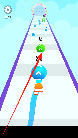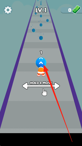 1、進(jìn)入賽道場景,觀察小球的推動方式,留意初始障礙物和可收集物品,準(zhǔn)備開始推動小球奔跑。