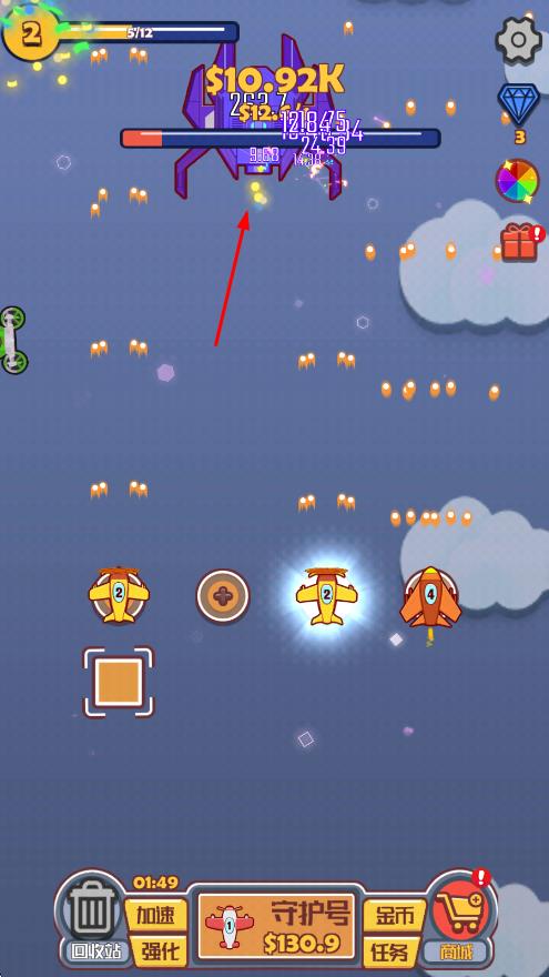 2、編隊(duì)布局技巧:將范圍攻擊型飛機(jī)放在前排覆蓋更多敵人,單體高傷機(jī)型瞄準(zhǔn)BOSS位置,合理利用場(chǎng)地空間提升輸出效率。