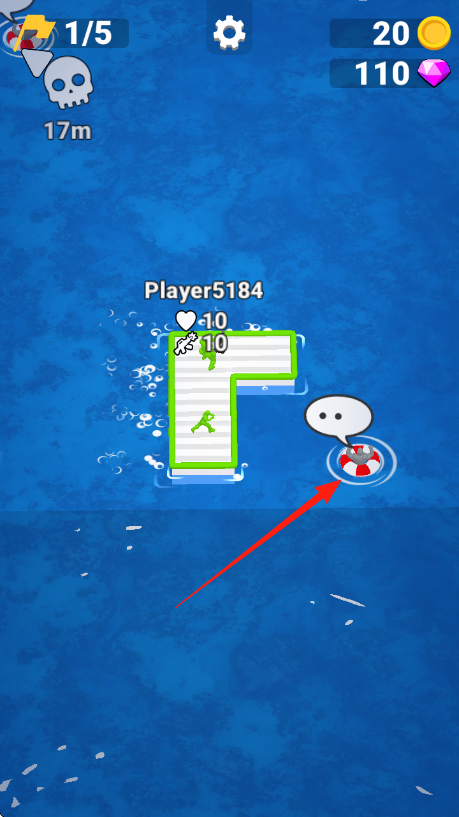 2、移動(dòng)到紅箭頭指向的救生圈處,救援隊(duì)友或獲取資源,提升角色血量兵力增強(qiáng)戰(zhàn)力,同時(shí)留意界面道具,可能觸發(fā)特殊效果或任務(wù)。
