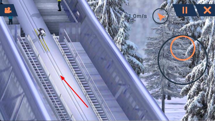 3、滑雪者會自動下滑,在合適的時機,通過操作控制滑雪者起跳,在空中保持平衡,落地后完成一次跳臺滑雪挑戰(zhàn)。