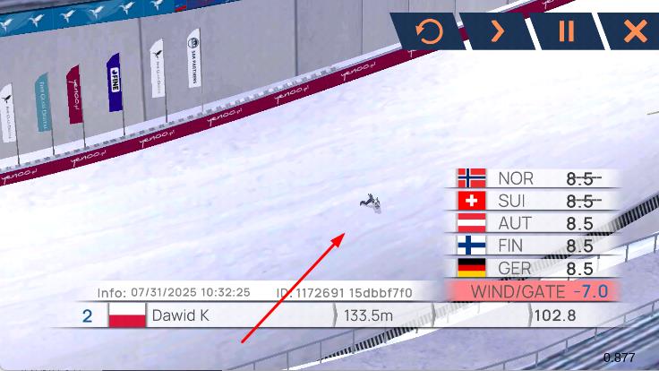3、競技策略運用:根據(jù)場景的跳臺坡度、風力大小調整滑行節(jié)奏,適當降低起跳速度,在多人競技中觀察對手成績,優(yōu)化自身動作爭取更好排名。
