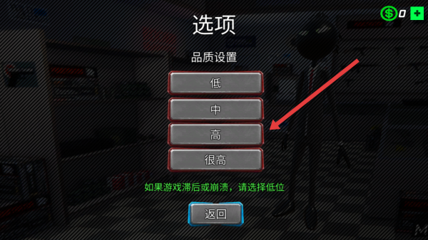 1、在游戲選項(xiàng)界面,點(diǎn)擊高品質(zhì)設(shè)置按鈕,雖提示滯后或崩潰可選低位,仍可嘗試高畫質(zhì)來提升視覺體驗(yàn),完成畫面質(zhì)量設(shè)定。