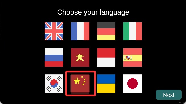 1、進(jìn)入游戲后首先選擇我們的游戲語(yǔ)言,圖示位置是簡(jiǎn)體中文。