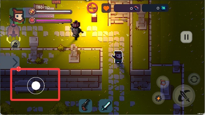 4、開(kāi)始游戲后滑動(dòng)左下角搖桿即可移動(dòng)角色。