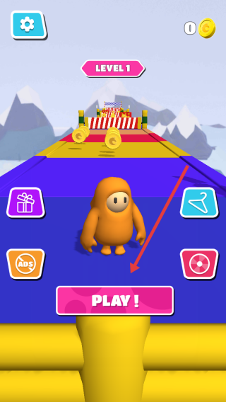 1、在LEVEL1初始界面,點擊粉色PLAY按鈕,操控橙色角色開啟跑道闖關,正式進入第一關冒險。