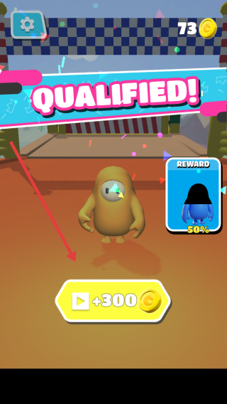 3、成功通關后,點擊黃色+300按鈕領取金幣獎勵,可解鎖新角色外觀,繼續(xù)挑戰(zhàn)后續(xù)關卡。