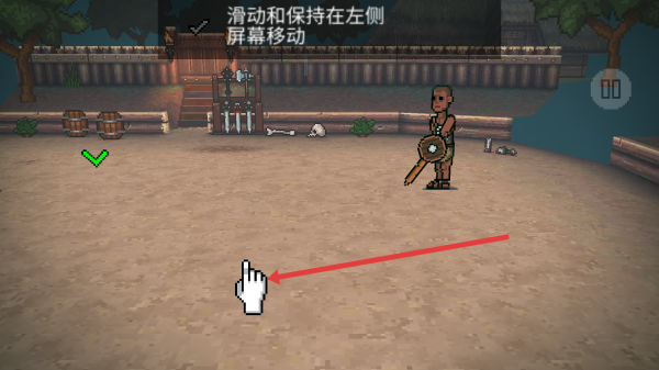 1、開局需要按照指引滑動(dòng)左側(cè)屏幕向前移動(dòng),靠近武器架第一關(guān)場景來拾取裝備,提升了戰(zhàn)斗力。
