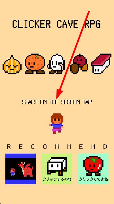 1、點(diǎn)擊屏幕中START ON THE SCREEN TAP文字區(qū)域,開始CLICKER CAVE RPG冒險(xiǎn),進(jìn)入角色信息界面。