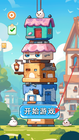 1、點擊開始游戲按鈕,進入游戲開始堆疊房屋的挑戰(zhàn)。