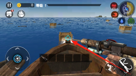 1、擴(kuò)建你的木筏,了解生存基本需求,觀察周圍環(huán)境,準(zhǔn)備前往不同地方收集有用資源。