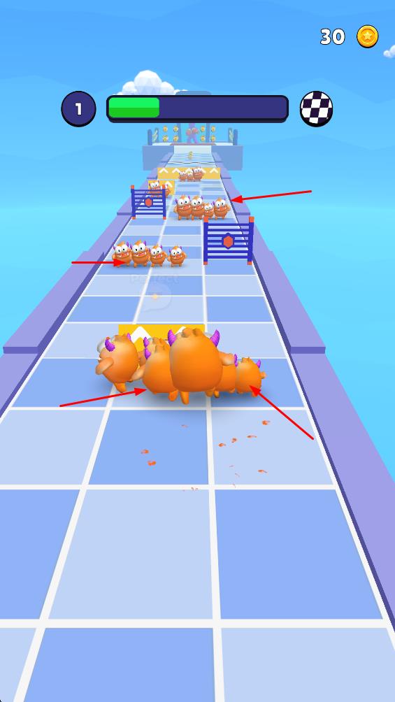 1、聚集人群壯大隊伍:從初始角色出發(fā),在奔跑中不斷聚集散落的豆人,讓隊伍逐漸壯大,人數(shù)越多越能抵御風險,為對抗敵人和穿越障礙奠定基礎(chǔ),感受隊伍成長的樂趣。