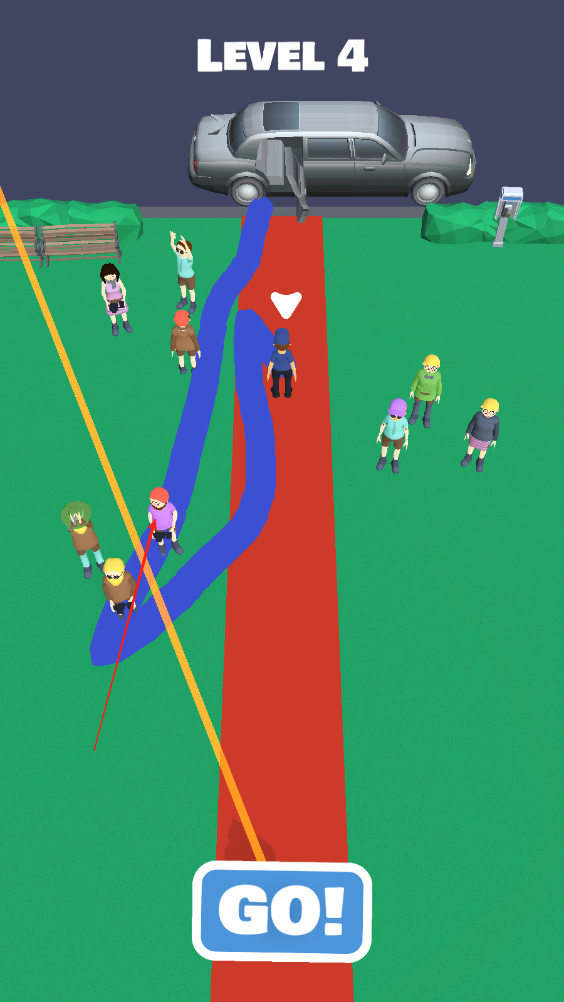 1、給保鏢畫線,讓保鏢擋住這一條黃色的線,這是遠(yuǎn)處狙擊手,讓保鏢走在老板必經(jīng)之路,讓老板安全上車。