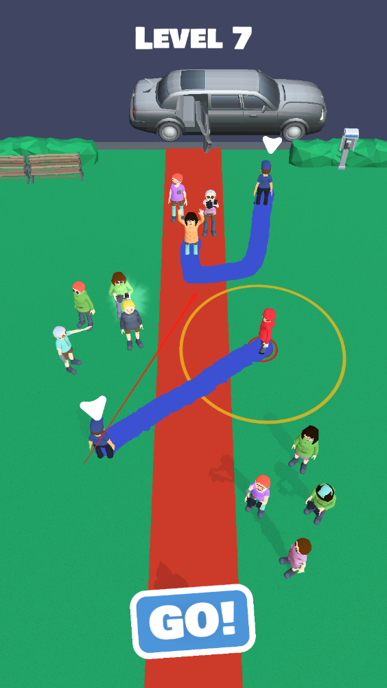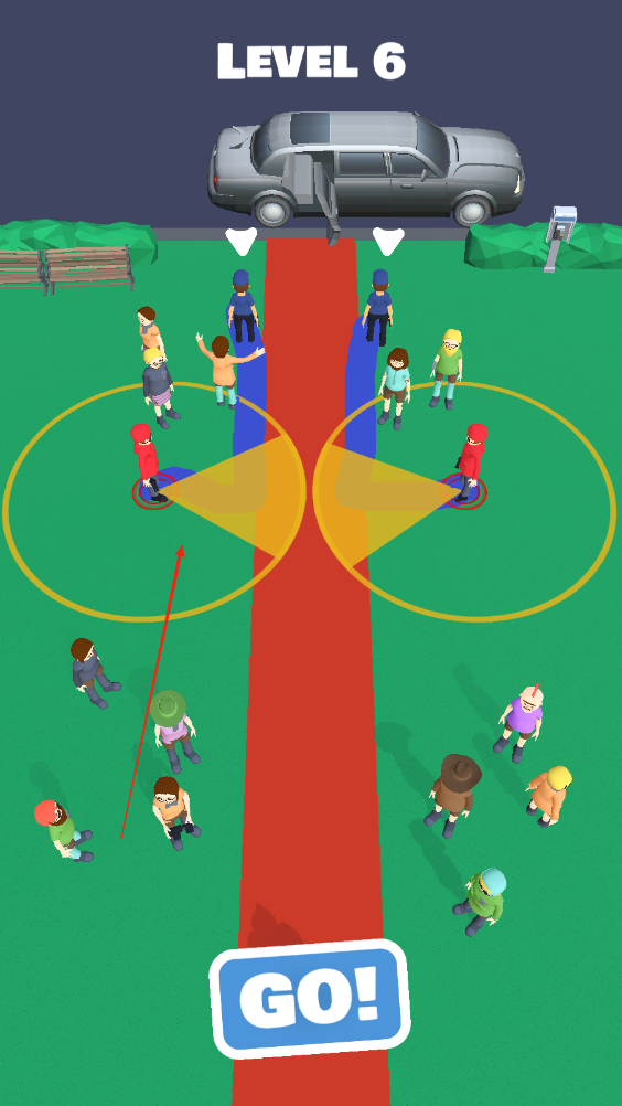 2、紅色小人也會攻擊老板,我們需要在老板走到紅色小人的范圍圈之前,讓遍布兩頭的保鏢將兩個紅色小人攔下。