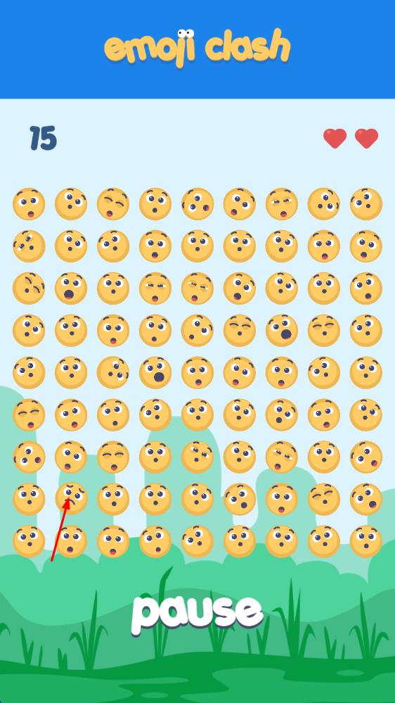 1、進入游戲后,面對滿屏排列整齊的繪文字,集中注意力仔細觀察,快速掃描每個表情,尋找那個與眾不同的“異類”。