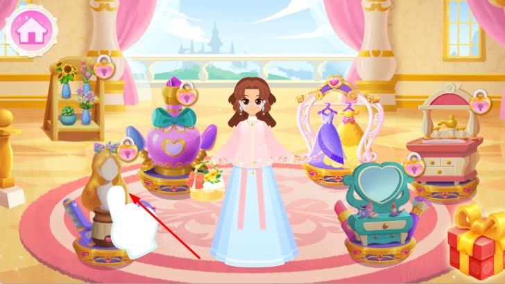 3、點擊場景中可以解鎖的的道具,對公主的發(fā)型、配飾等進(jìn)行進(jìn)一步調(diào)整,幫助公主展現(xiàn)出最佳形象。