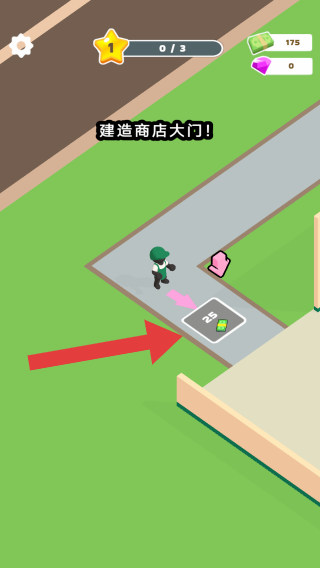 2、將剛剛拾起的錢可用于建造商店的大門,可根據箭頭所指向的區(qū)域進行移動,是新手引導的教程。