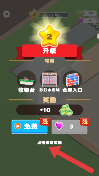3、顯示等級升級到2極,可建造多個區(qū)域等級就會越來越高,每次升級都會獲得獎勵金幣+10。