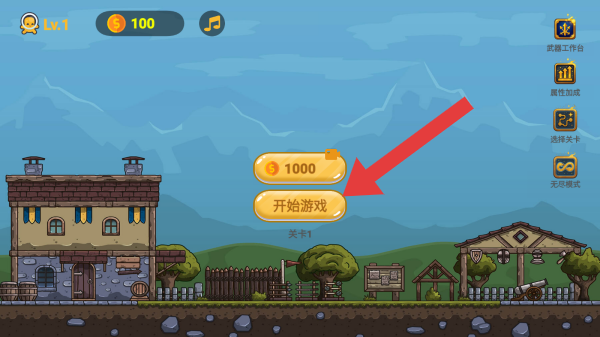 1、畫面呈現(xiàn)復古的場景,有1000的金幣獎勵,也可點擊開始游戲方可進入場景進行游玩。