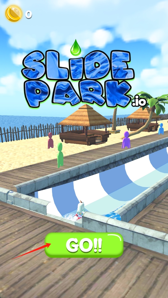 1、在Slide-Park.io啟動界面,點擊GO!!,開啟刺激的水滑道滑行挑戰(zhàn),點擊開始游戲。