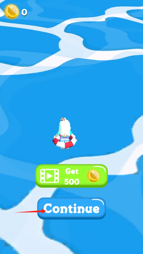 3、滑行結(jié)束后,在結(jié)算界面可選擇Continue繼續(xù)游戲,也可觀看視頻獲取金幣獎勵,為后續(xù)游戲積累資源。