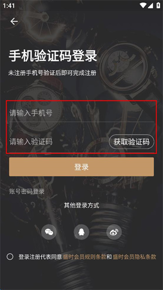 3、在手機(jī)驗證碼登錄頁面,輸入手機(jī)號,輸入驗證碼,點擊獲取驗證碼后填寫。