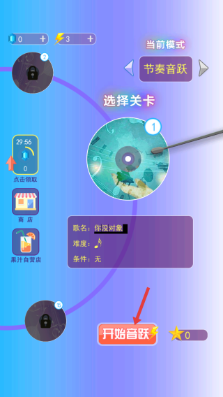 1、在游戲中,選擇喜歡的關(guān)卡,點擊開始音躍按鈕,開啟音樂跳躍之旅。