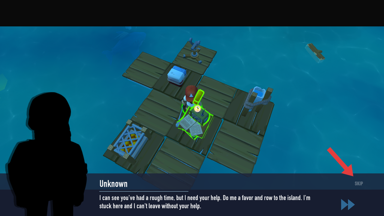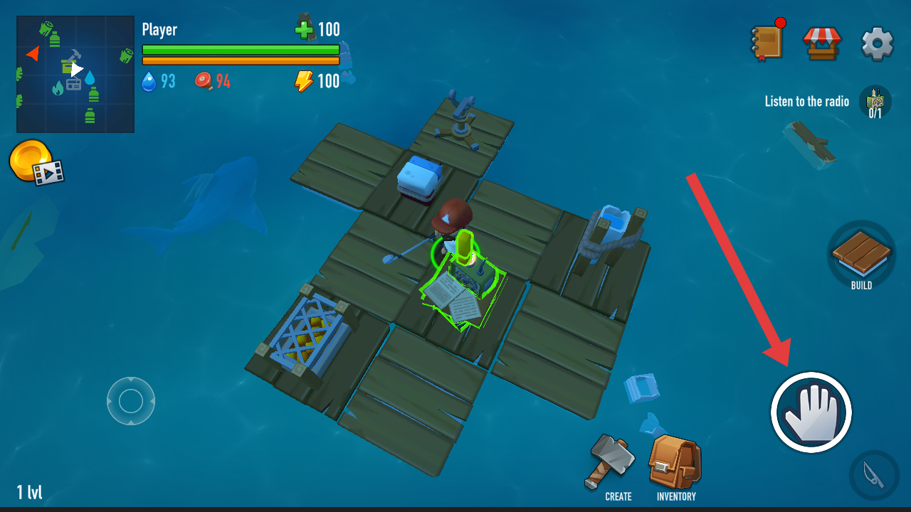 1、開(kāi)局進(jìn)入游戲,需要點(diǎn)擊屏幕右側(cè)手型的按鈕,與木筏上的裝置進(jìn)行互動(dòng),觸發(fā)劇情任務(wù)。