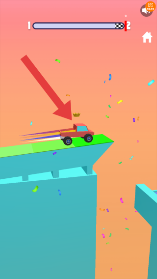 2、遇到中間有空缺的地區(qū)時,可以向上滑動車輪讓車飛躍障礙,不然容易掉落使關(guān)卡失敗。