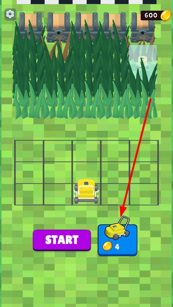 2、割草過程中,玩家可以觀察寶箱的位置,規(guī)劃割草機的始發(fā)位置,從而獲得寶箱,拿到金幣,用以獲取割草機。