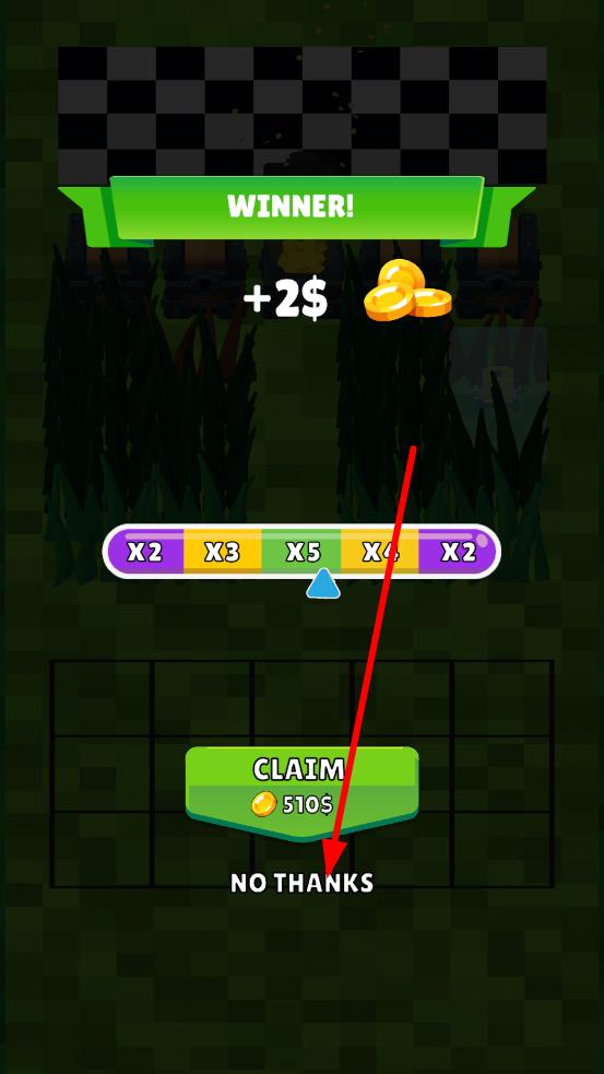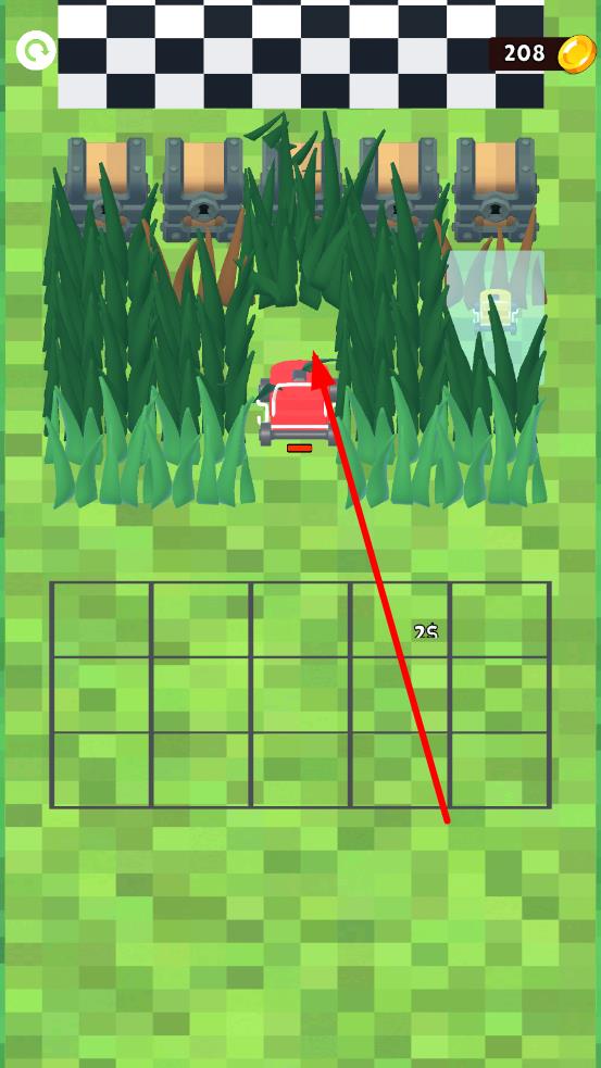 3、操控升級后的割草機,規(guī)劃最優(yōu)路線突破層層草叢封鎖,朝著頂部方格旗區(qū)域推進,成功抵達后,解鎖金幣獎勵與倍數(shù)加成轉(zhuǎn)盤的選擇機會。