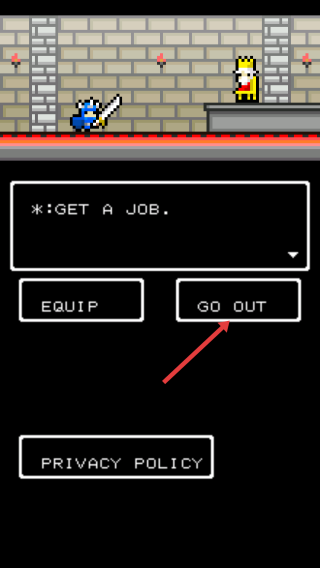 1、進(jìn)入游戲,點(diǎn)擊GO OUT按鈕,讓角色走出當(dāng)前區(qū)域,開始新的冒險(xiǎn)旅程。