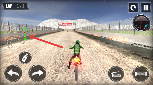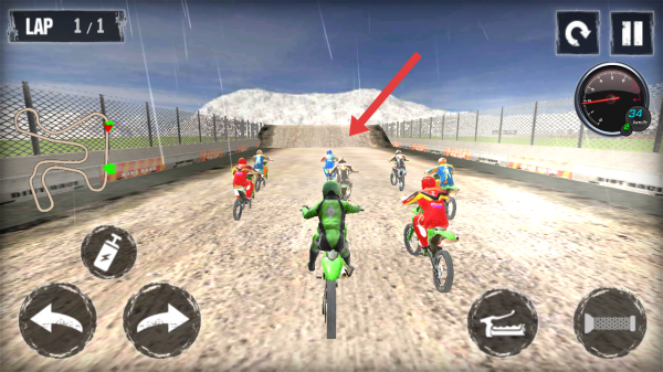 1、比賽起步后,需要操控摩托沖向斜坡,并且利用加速鍵來(lái)加速自身的速度,超越對(duì)手。