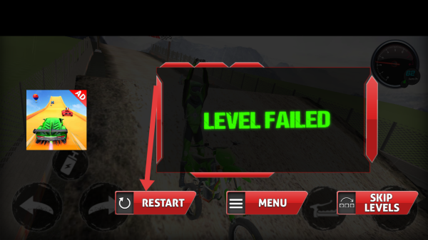 3、若是沒(méi)有超越其他對(duì)手則競(jìng)速比賽失敗,點(diǎn)擊界面中RESTART的按鈕,重新挑戰(zhàn)關(guān)卡。