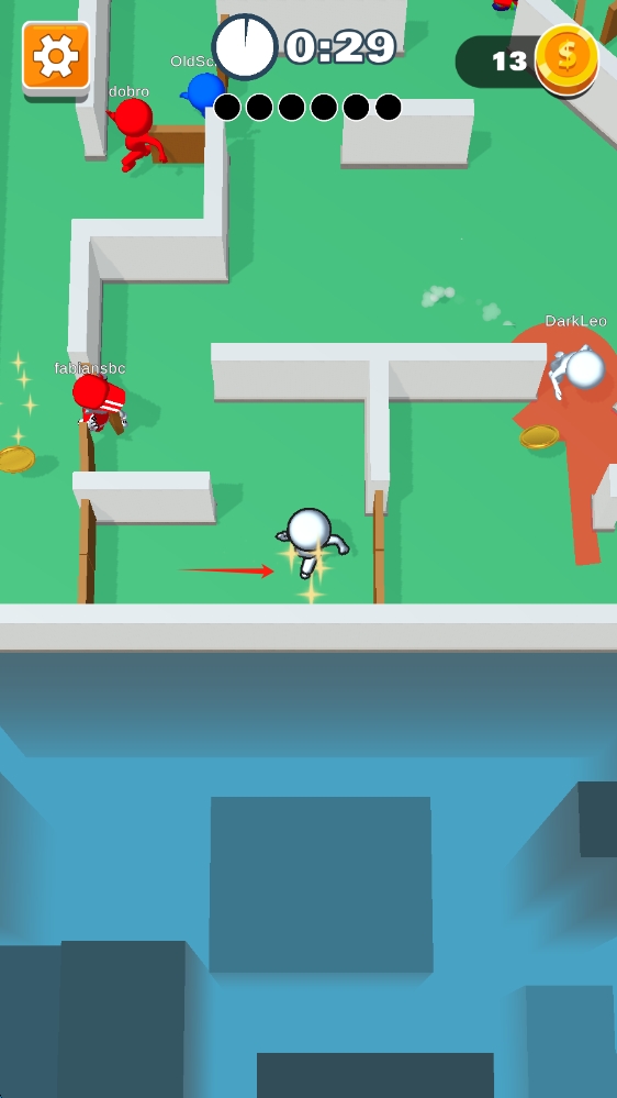 2、進(jìn)入HIDE模式操作界面后,通過(guò)虛擬方向鍵控制白色小人在迷宮中移動(dòng),時(shí)刻關(guān)注剩余時(shí)間和金幣數(shù)量,靈活躲避紅色小人追捕。