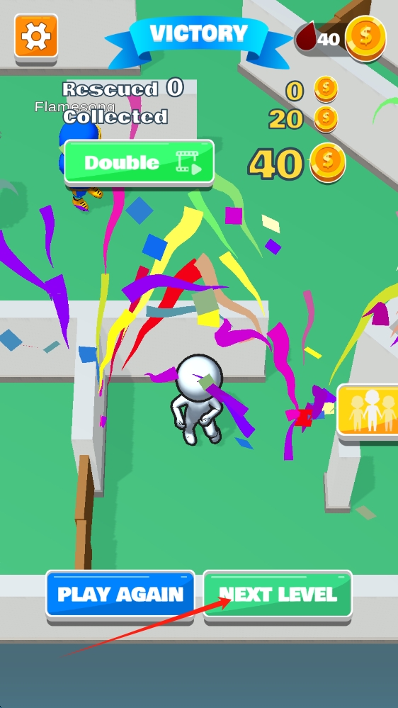 3、當(dāng)取得游戲勝利,進(jìn)入勝利界面時(shí),可根據(jù)需求選擇PLAY-AGAIN再次挑戰(zhàn)當(dāng)前關(guān)卡,或點(diǎn)擊NEXT-LEVEL開(kāi)啟新的關(guān)卡挑戰(zhàn)。